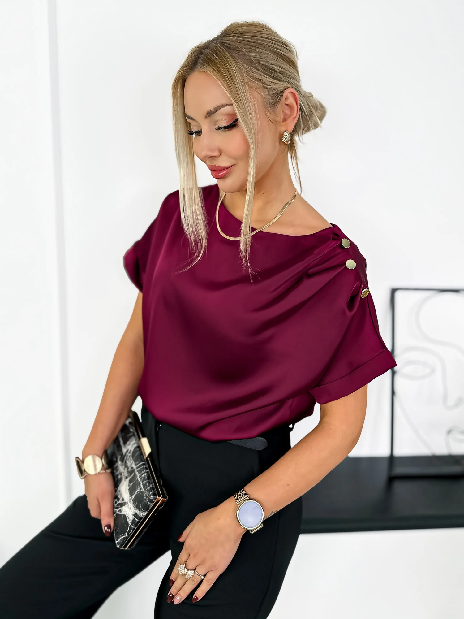 Bluzka Satynowa Rosita Bordowa