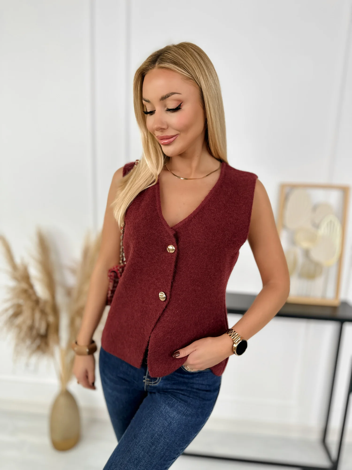 Kamizelka Sweterkowa Ginepro Bordowa