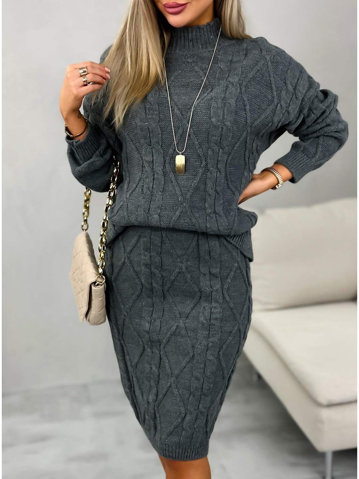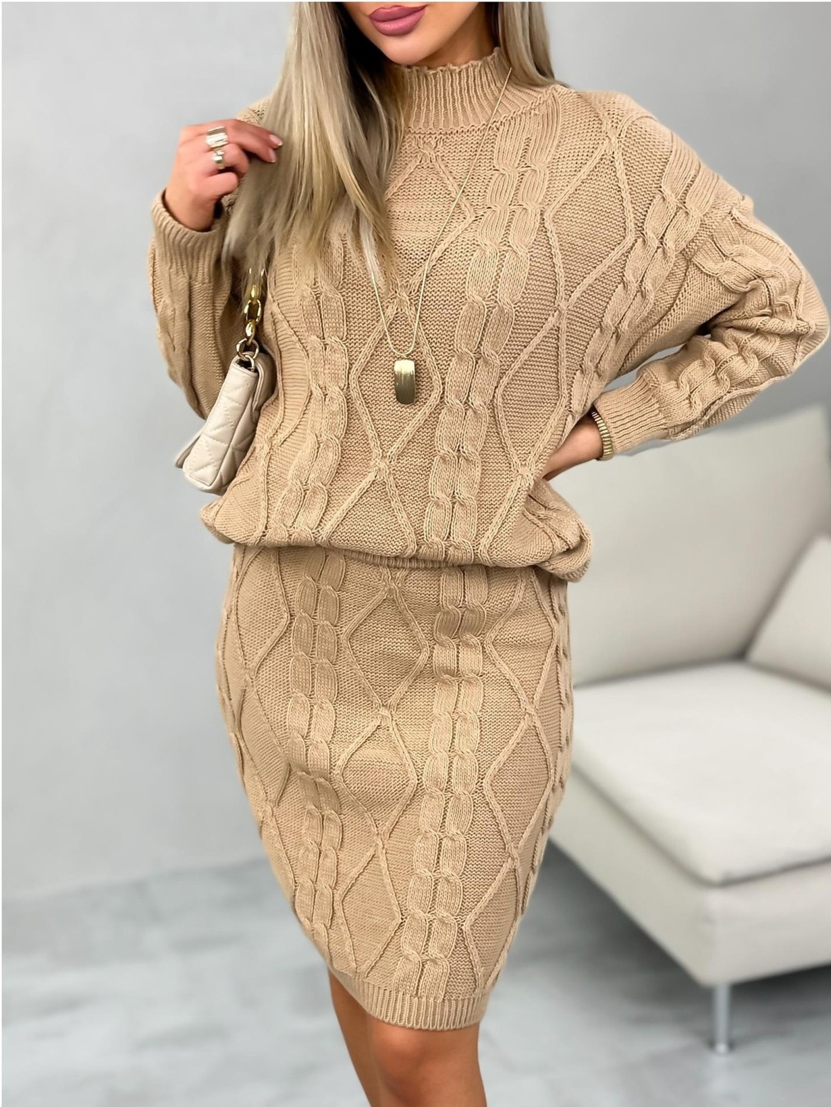 Komplet Sweterkowy Malison Camelowy