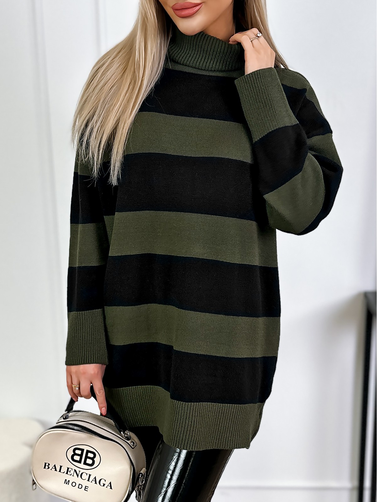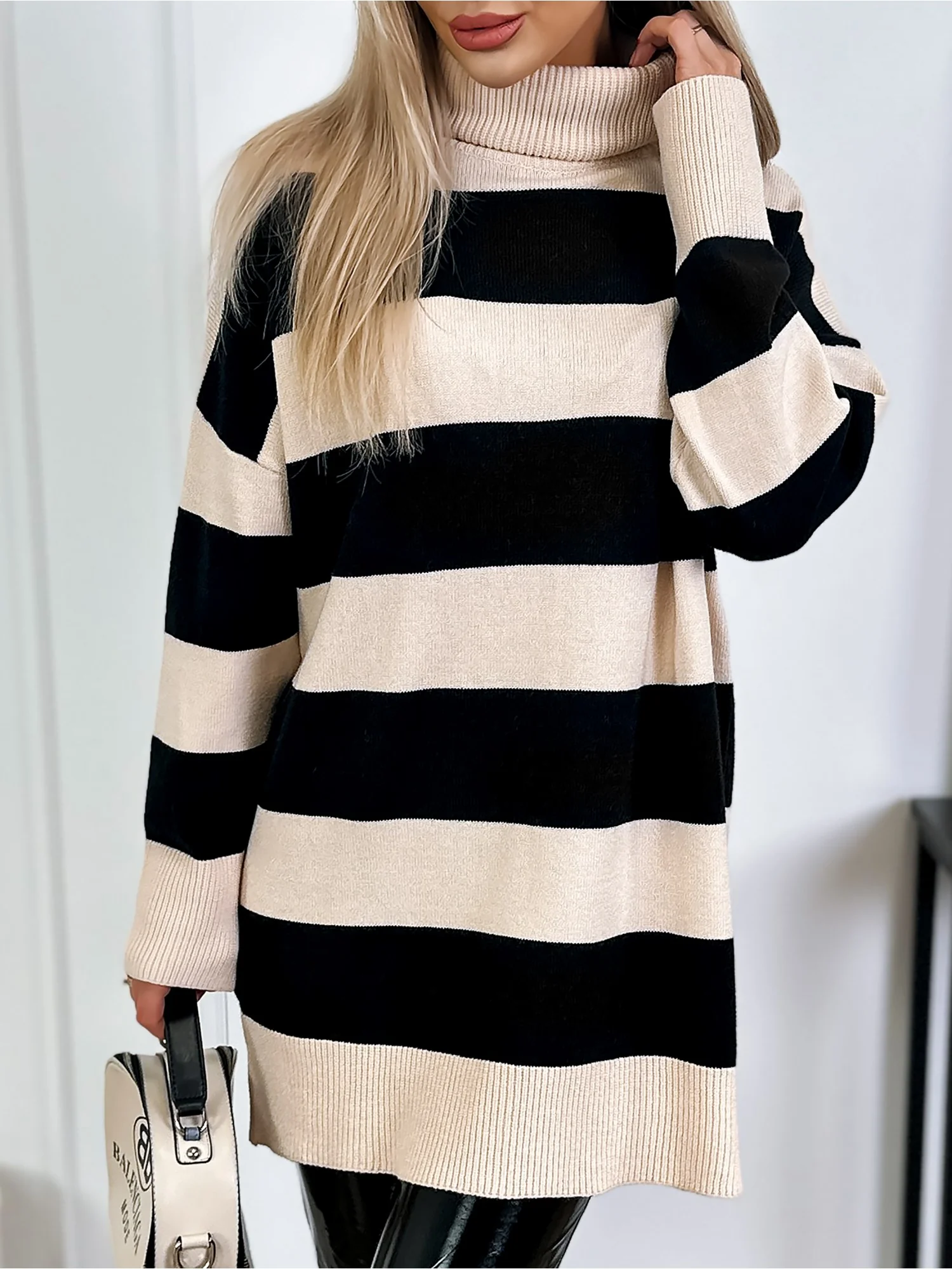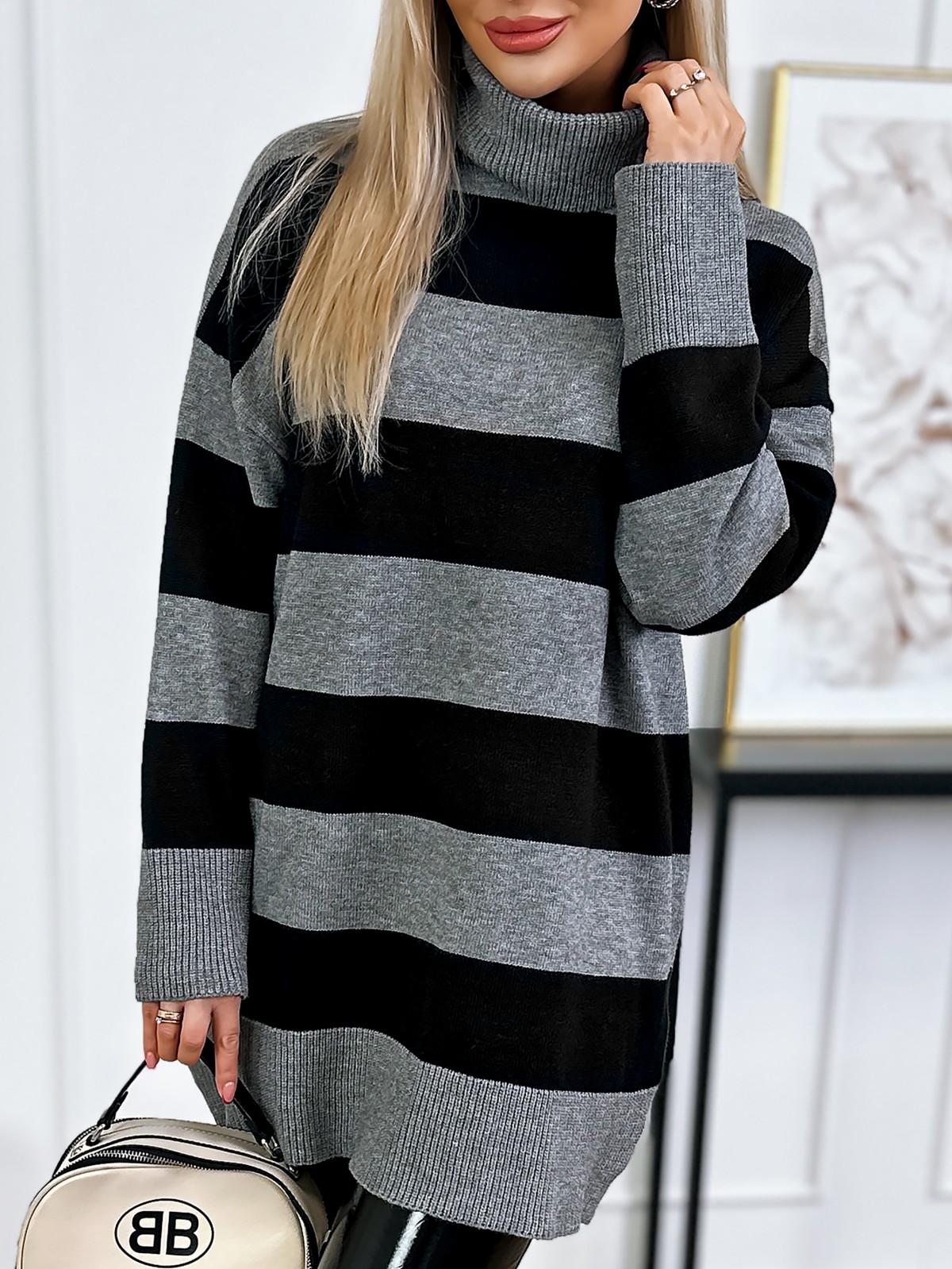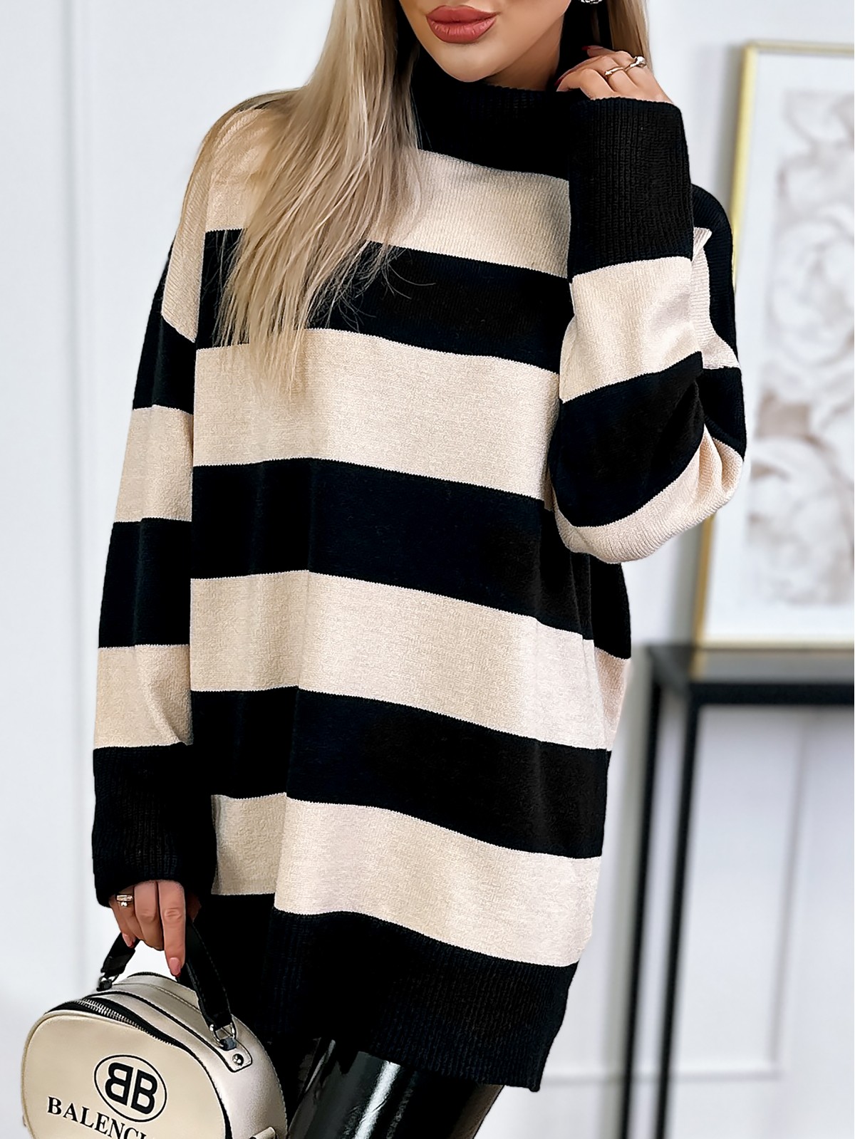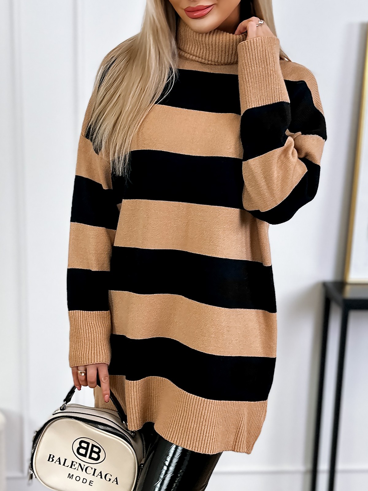 Sweter Z Golfem Toria Beżowo-Czarny